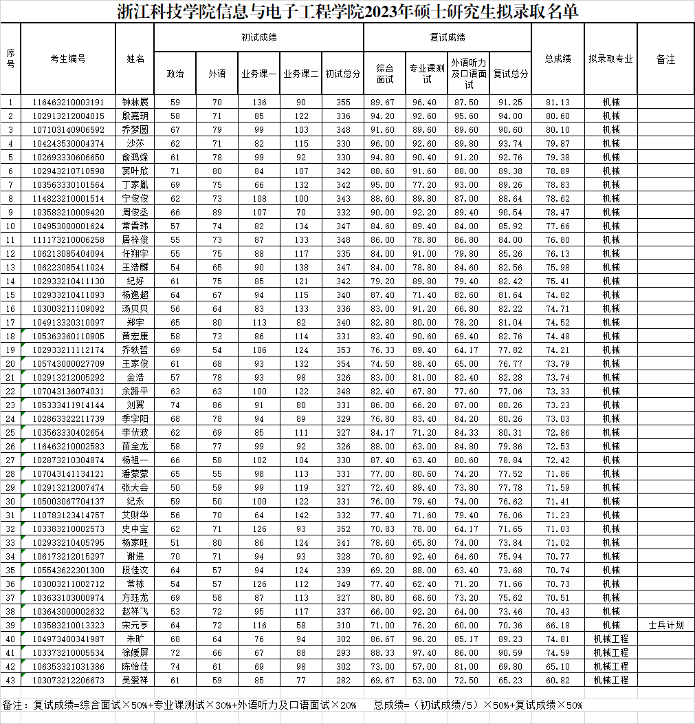 经考生初试、复试等各个环节,信息与电子工程学院招生工作领导小组确认,现对拟录取的考生进行公示(详见下表),公示时间为2023年4月7日至2023年4月21日(10个工作日),如有疑义,请以书面的形式反映,反映问题要实事求是,署本人真实姓名。