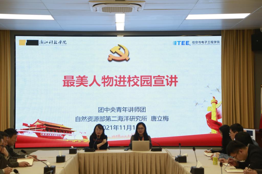 邀请团中央青年讲师团成员、国家自然资源部第二海洋研究所副研究员唐立梅为师生做题为《保持理想 向阳而生——从深海到南极,探索的脚步不停止》宣讲。