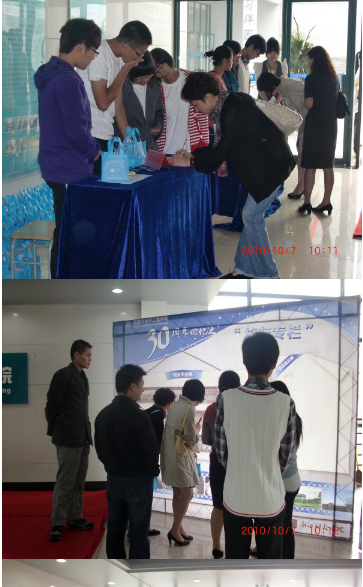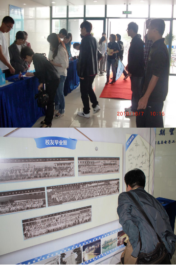 的志愿者们就陆续站在了自己的岗位上,在C1教学楼迎接来访校友,门口摆放着来自不同地区校友赠送的花篮。到访校友寻找了自己当年的毕业照,并在留言板上签名,休息时观看学校宣传片。随后校友跟随学生导游参观校史馆、B2艺术展、茶楼等学校景点,校友对学校的景色以及学校近几年的改变都赞不绝口,尤其是校史馆的布置,新颖又具有时代感。参观结束后,校友结队聚餐。
