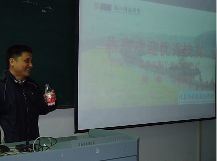 2012年11月30日下午14:30,恒生电子股份有限公司党组书记周峰来到学校参加校友活动,并应邀给杏吧