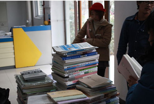 活动当天,中研会分别在大三大四寝室楼下设置了书籍的回收及宣传点。在工作人员的积极宣传介绍下,同学们络绎不绝地来到回收点,热情的他们把已打包好的书籍搬送到工作人员的手中。书籍从同学们的手中传到了工作人员的手中,这不仅仅是书籍的传递,更是爱的传递。