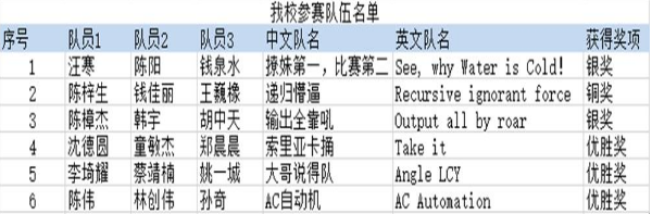 有史以来首次有大二的同学获得该项比赛的银牌,非常难得。剩下的队伍虽与奖牌失之交臂,但也离得奖只有一步之遥。特别是15级的同学,表现十分突出,值得鼓励。