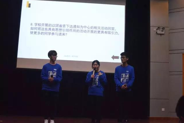 学生会主席团陈梦霞、黄泽鑫、关圣凡三人负责。沉着冷静地回答了现场抽取的问题和观众提出的问题。