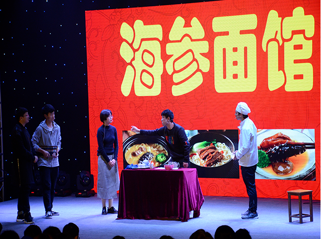 接下来是郭昕耀团队带来的小品《海参面馆》,他们幽默的表演风格引的全场爆笑连连。