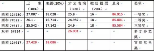 在经过卫生检查、才艺展示、微信投票等多个环节层层选拔之后,最终的获奖寝室已经选出,现在进行获奖名单的公示。