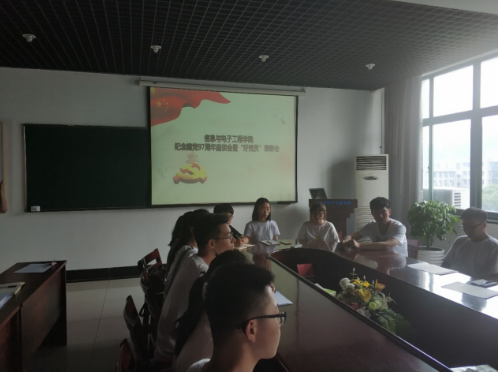 2018年6月29日下午2点,在C2-504会议室,信息与电子工程学院举行庆祝建党97周年暨“好党员”表彰会。院党委书记傅晓炜、副书记姜国泉、学生支部书记潘中祥老师、马利国老师和部分优秀学生党员代表参加此次会议。会议由学院党委副书记姜国泉老师主持。