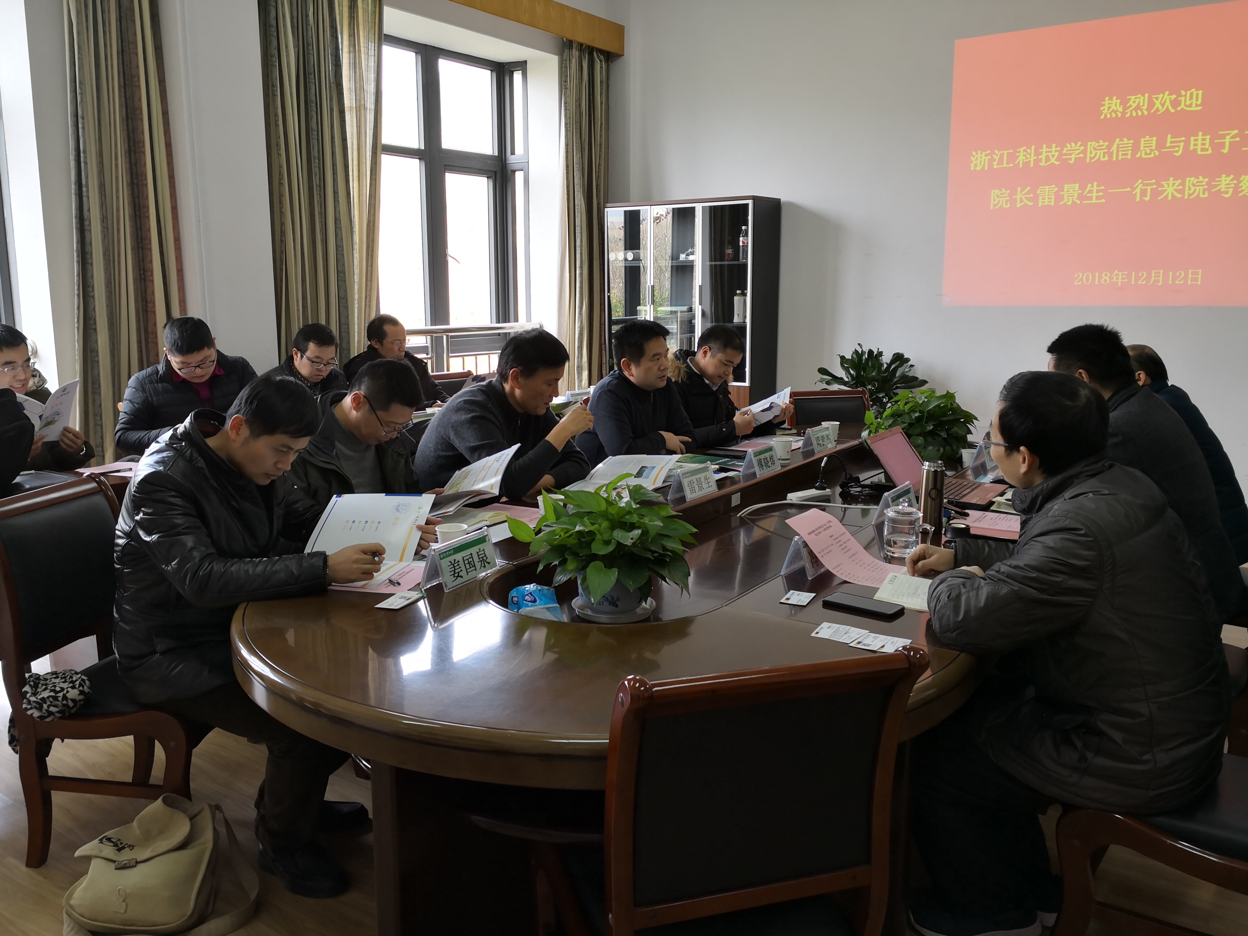 12月12日,学院院长雷景生、党委书记傅晓炜,及党政领导班子成员、相关专业主任赴浙江农林大学信息工程学院交流。 双方就学院机构组织运营、教学与科研团队建设、研究生管理和培养、学生创新训练、产教融合等人才培养模式、实验室建设与管理、计算机专业认证复评工作等情况作了充分的交流。 学院将继续开展学科调研及内涵建设,进一步凝练学科特色,促进学院大发展。
