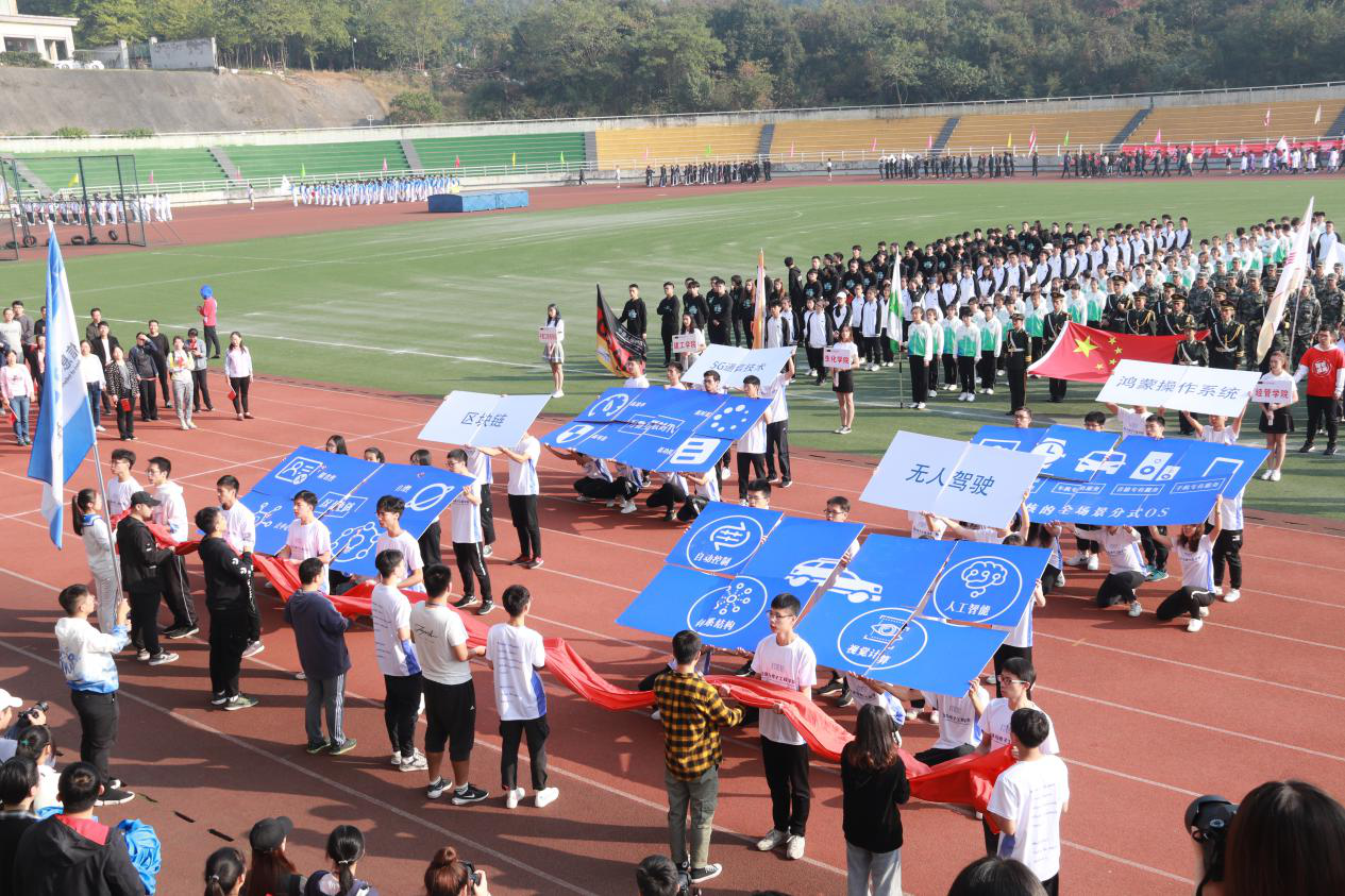 专业特色,融合互联网发展进程,向大家展示了“5G”、“区块链”等前沿科技,巨幅国旗和由学生拼成”70”字样表达了信息学子的爱国情怀。“聚你我能量,燃中国梦想,一颗中国心,共筑中国梦”喊出了信息学子的科技报国的心声。运动会期间,所有选手都赛出了成绩,赛出了风格,发扬了拼搏奋进的精神,看台观众和学生会工作人员也在场下做好加油助威和服务工作。