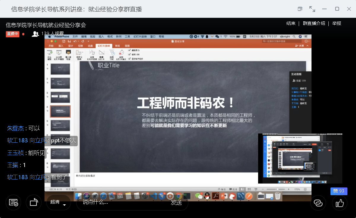 于5月23日下午14点30分举办了线上就业经验分享会。杏吧