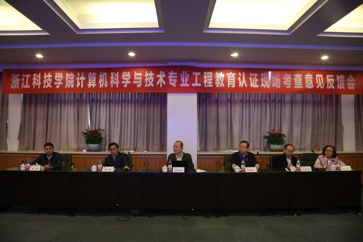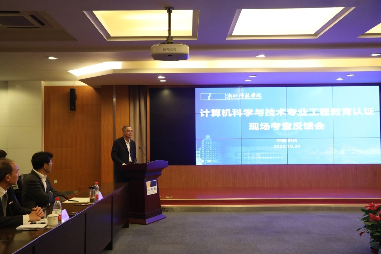 考查反馈会上,张春元教授代表专家组全面详细反馈了专家组初步考查意见,充分肯定学校及计算机科学与技术专业在教学管理和人才培养工作中所取得的成绩,认为专业办学符合浙江地区社会需求定位,为学生提供了良好的学习指导、职业规划和就业指导和心理健康指导,专业建立了满足认证标准、可支撑培养目标的课程体系等。学生对学校认可度高、热爱专业、勤奋钻研、积极向上,老师教书育人,敬业爱岗。专家组建议,加强OBE理念的固化、加强过程管理、完善督导评价机制,校院两级要解放思想、补齐短板,为信息行业培养更多优质人才。