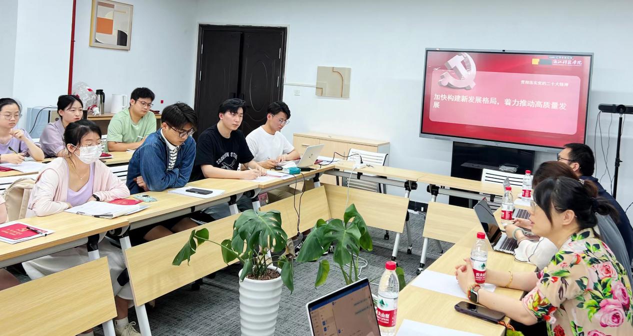 党委书记张蕾同志为比特实验室党支部师生党员作题为《加快构建新发展格局·着力推动高质量发展》的专题党课。
