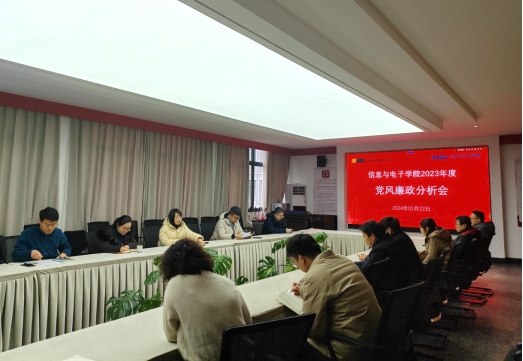 2024年122日,信息与电子工程学院召开2023年度党风廉政建设分析会。纪检监察室叶豪芳副主任到会指导,学院党政领导班子成员参加会议,学院系(部)负责人及相关内设机构负责人、组织员等列席会议,会议由学院党委书记张蕾主持。